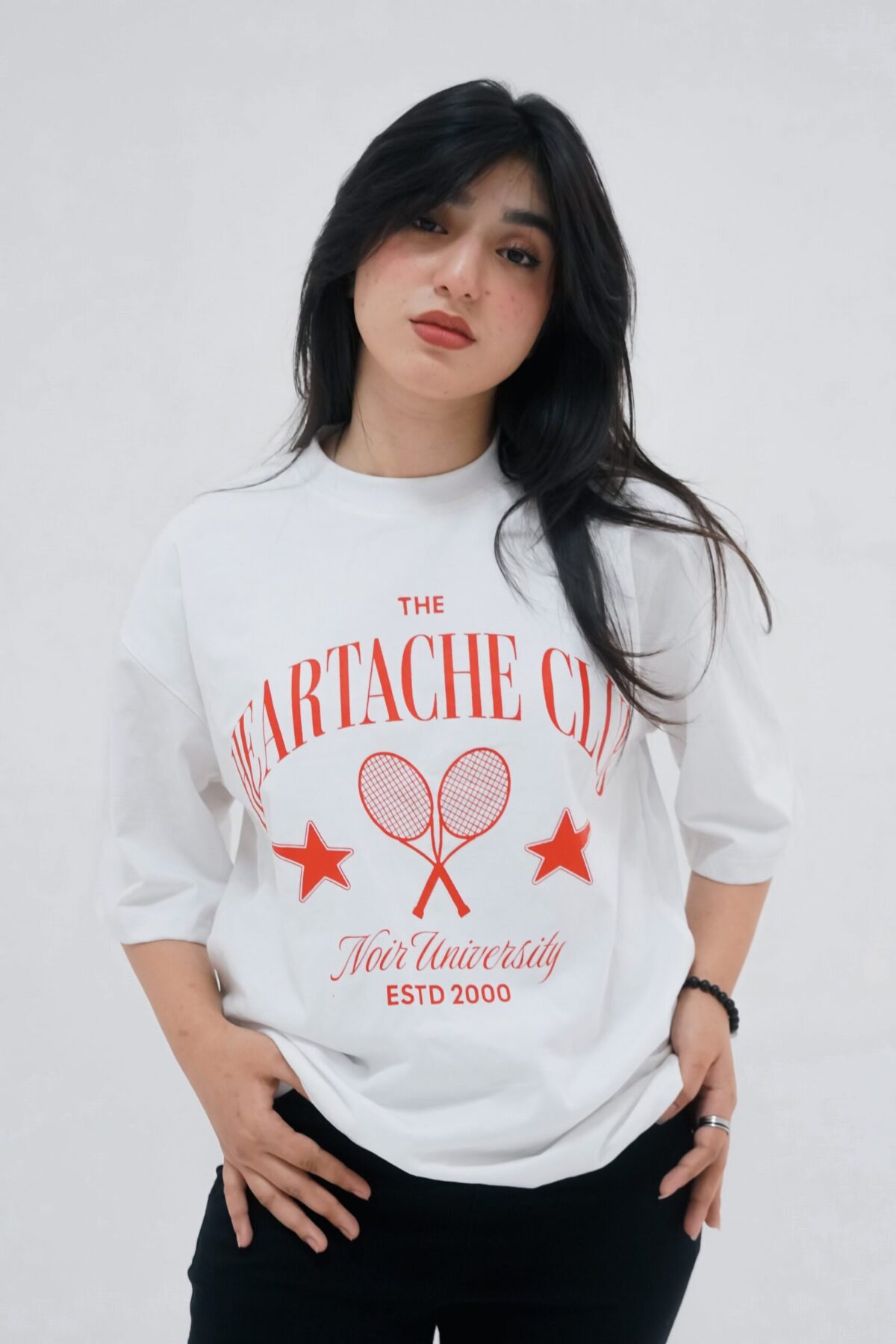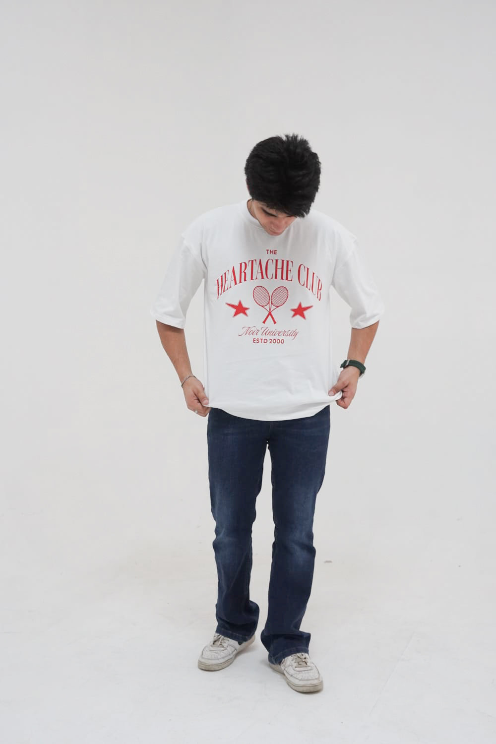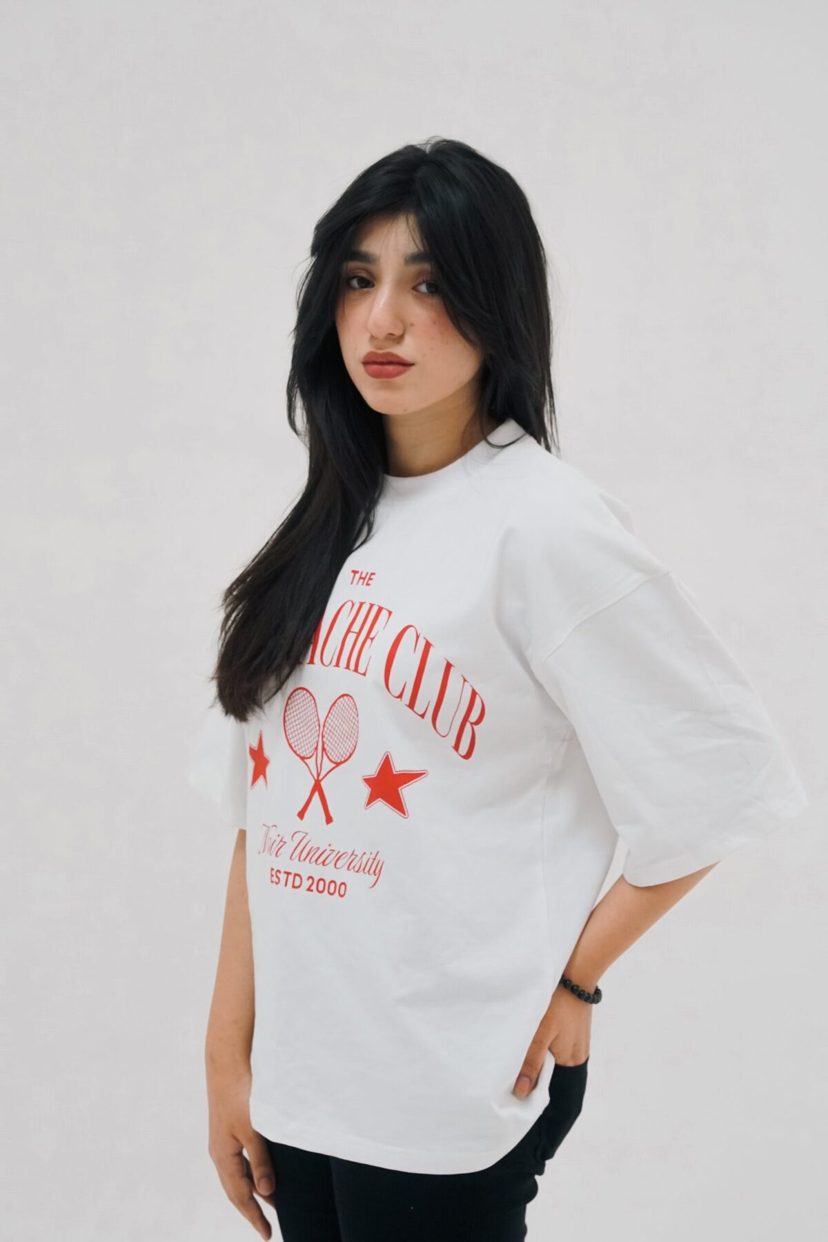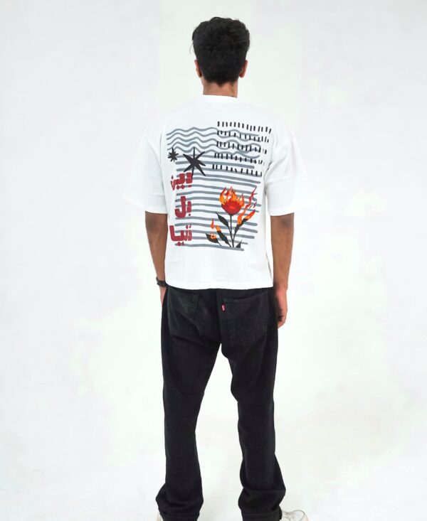 Oversized white tee with a bold screen-printed front graphic. Crafted from 200 GSM cotton jersey for all day comfort and style.